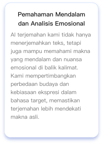 Kami memanfaatkan teknologi model besar terdepan, menyediakan pengalaman yang melampaui terjemahan mesin tradisional.